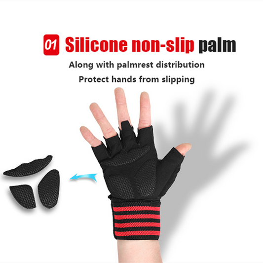 Body Building Gym Training Fitness WeightLifting Red Gloves Wrist Wraps Workout Half Finger For Men &Women